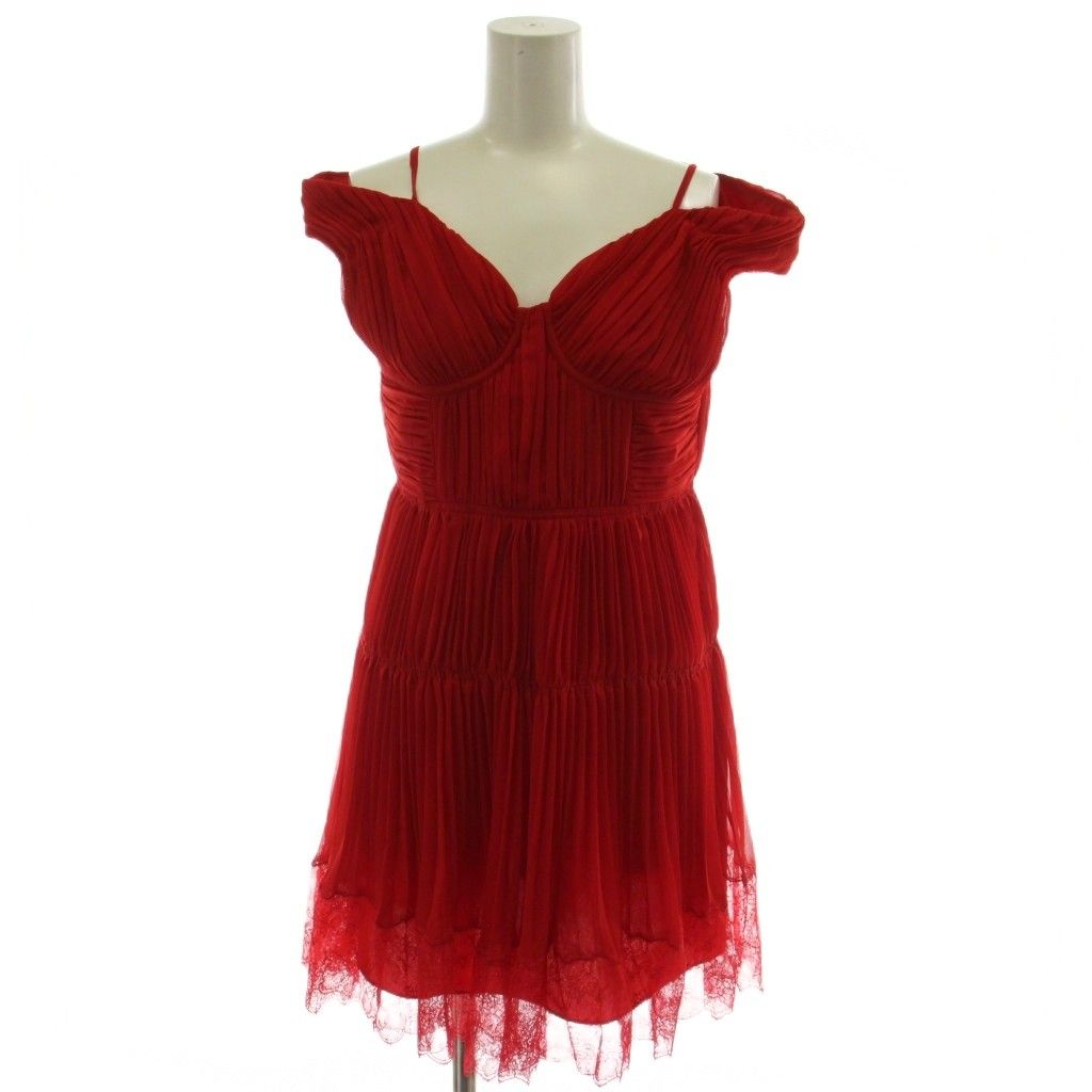 セルフポートレイト self-portrait ワンピース UK10 赤 レッド ひざ丈 ギャザー ドレス シフォン /GG ■GY18