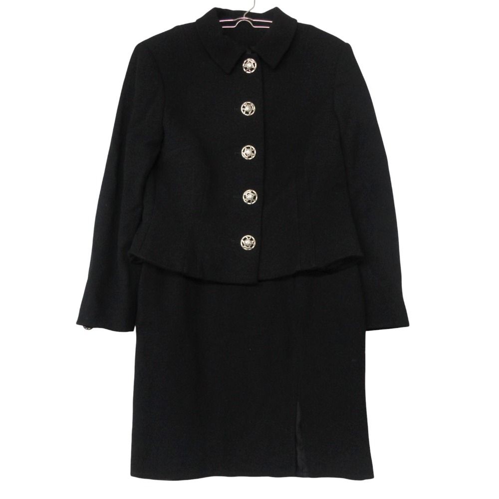 Versace Jeans ヴェルサーチ・ジーンズ クチュール COUTURE セットアップ メデューサボタン ジャケット ステンカラー スカート ブラック 42【M】 レディース 【中古】