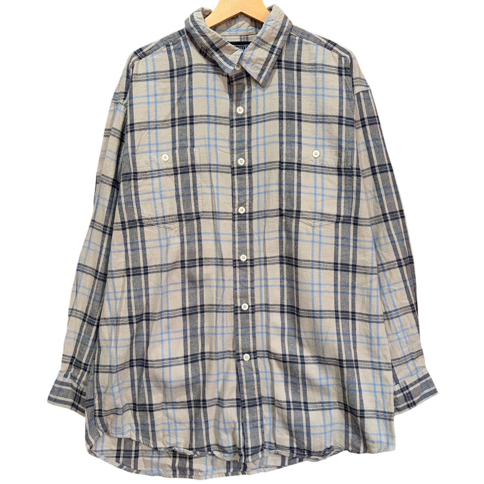 古着 DAKOTA チェック柄 ネルシャツ L ベージュ ネイビー 水色 長袖 コットン100% ワークシャツ フランネル アメカジ カジュアル メンズ レディース ユニセックス オーバーサイズ ビッグシルエット 春 秋 冬 / MS475
