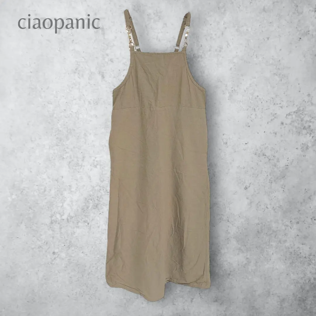 【ciaopanic チャオパニック】 リネンブレンドジャンパースカート カーキ