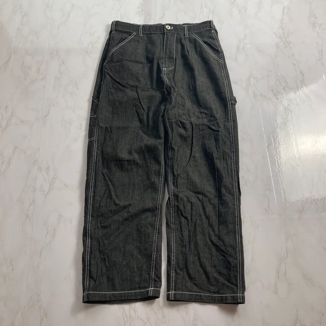 チャオパニック コットン リネン パンツ L ブラック グレー ストレート 麻