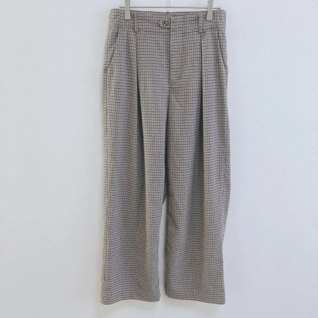 アメリカンホリック ワイドパンツ タック入り チェック柄 ブラウン系 L