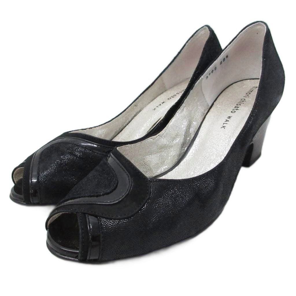 ツモリチサト ウォーク tsumori chisato walk パンプス オープントゥ ローヒール 22.5cm 黒 ブラック ■IBO93