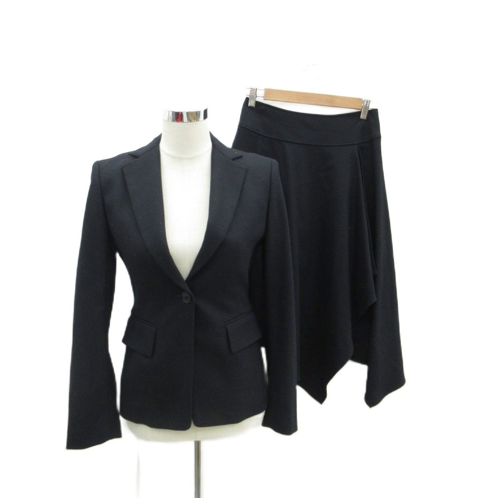 ダナキャランニューヨーク DKNY セットアップ 上下 2 黒 ブラック テーラードジャケット シングルボタン 総裏地 ミドル丈 アシンメトリースカート ロング丈 /YS7 ■ECE003