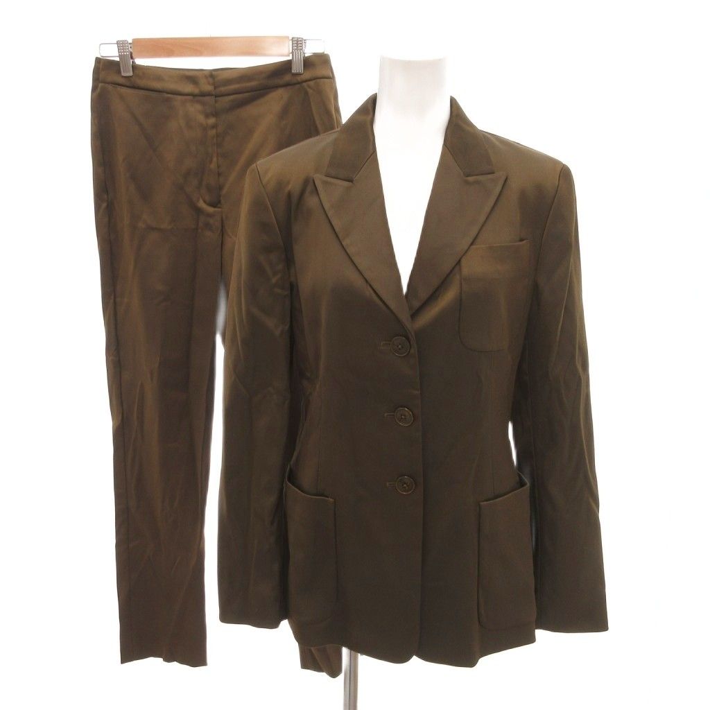 ダナキャランニューヨーク DKNY スーツ セットアップ 4 茶 ブラウン シングル パッチポケット スラックス /HW ■ECG003
