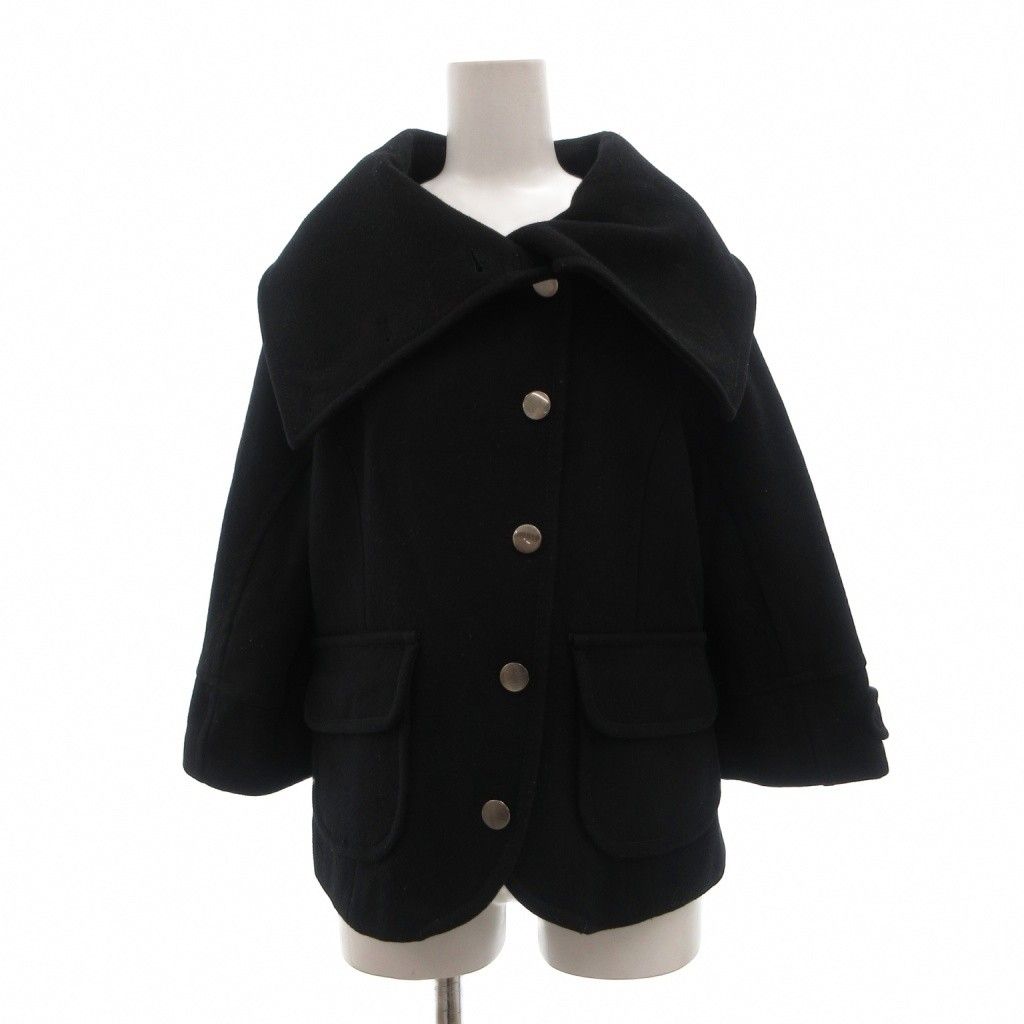 ダナキャランニューヨーク DKNY JEANS ショートコート ウール S 黒 ブラック 無地 大きな襟 七分袖 /SX ■ECF003