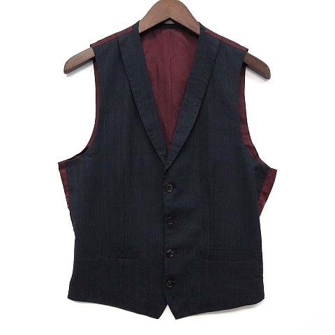 ダーバン DURBAN 襟つき ラペル ジレ ベスト ストライプ 紺 ネイビー Y5
