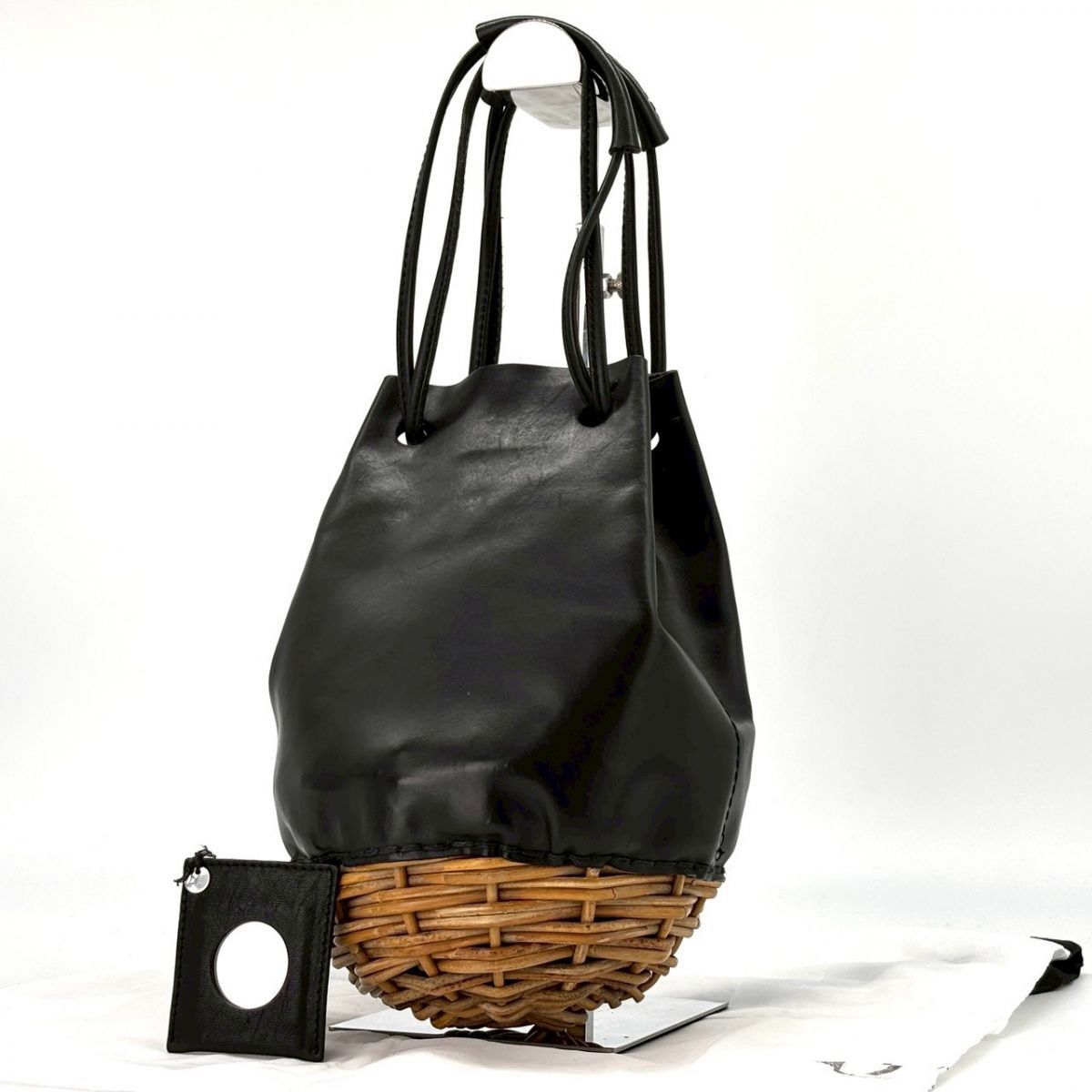 【時を編み、静けさを纏う】 ebagos かごバッグ オイルショルダー 底かご レザー ラタン ショルダーバッグ 2WAY 付属品完備 ブラック