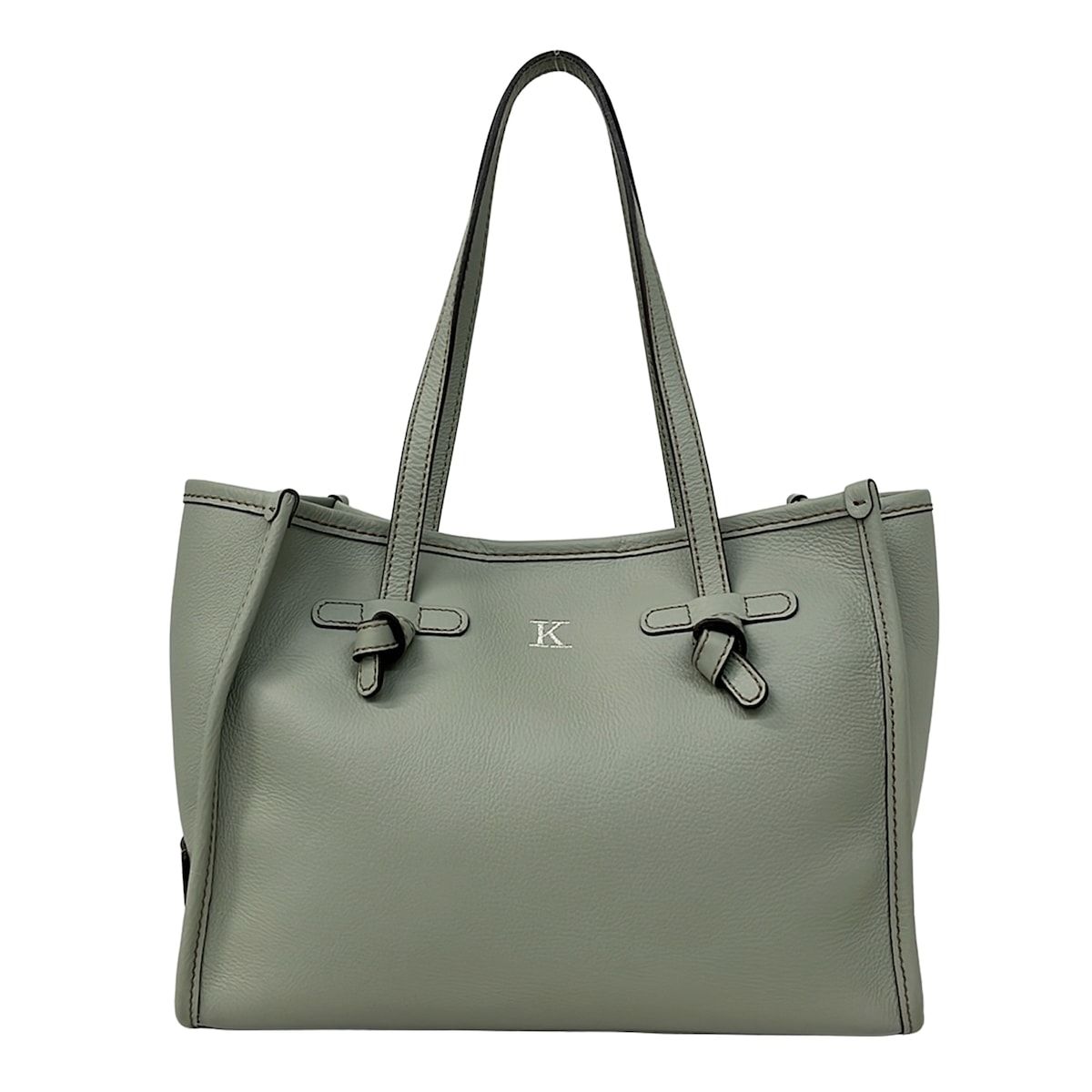 GIANNICHIARINI(ジャンニキャリーニ/ジャンニキアリーニ) トートバッグ マルチェッラS ライトグリーン イニシャル刺繍(K) レザー