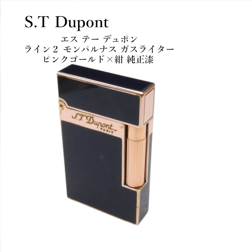 【着火確認済み】S.T Dupont エス テー デュポン ライン2 モンパルナス ガスライター ピンクゴールド×紺 純正漆 ブルー