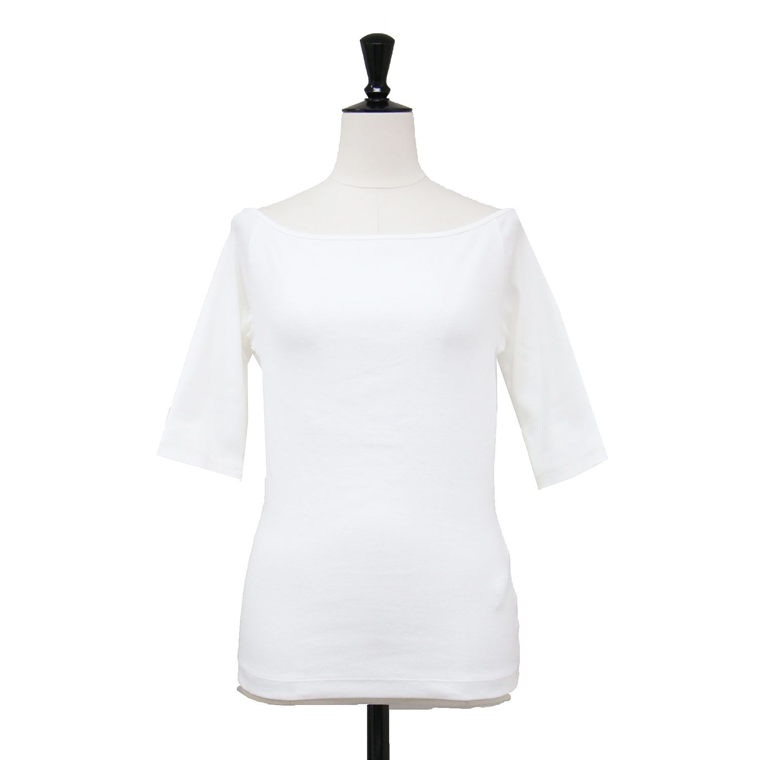 【美品】IENA LA BOUCLE イエナ ラ ブークル カットソー ホワイト 白 サイズ:FREE | 25春夏 コンパクトベア ボートネック カットソー | 5分袖 オフショルダー リブ コットン | トップス Tシャツ 日本製【レディース】【中古】