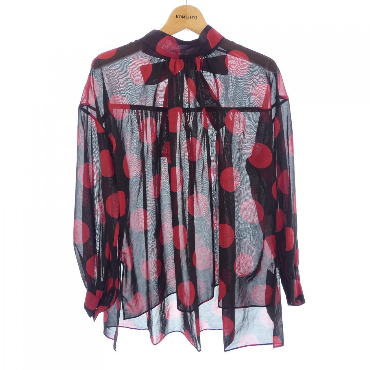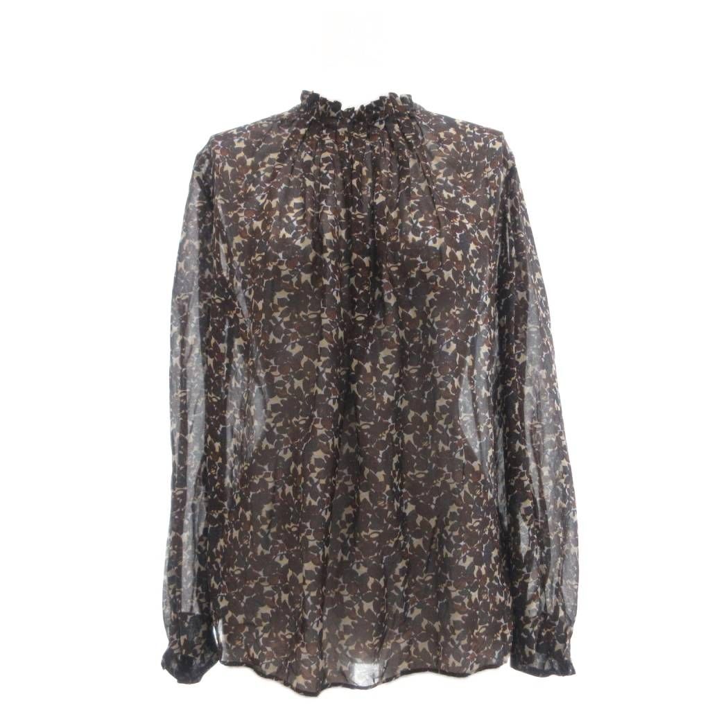 トゥモローランドコレクション TOMORROWLAND collection 美品 シルクツートーンリーフプリント ネックタックブラウス 36 黒 ブラック /MG