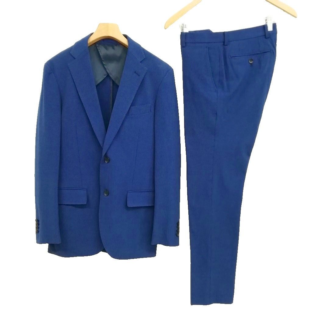 トランスコンチネンツ TRANS CONTINENTS 千鳥格子 シングル 2B スーツ セットアップ ジャケット スラックス S ネイビー