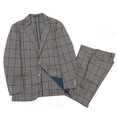 トランスコンチネンツ TRANS CONTINENTS カノニコ 21micron ウィンドウペン チェック スーツ セットアップ 2B ジャケット パンツ L 79 グレー