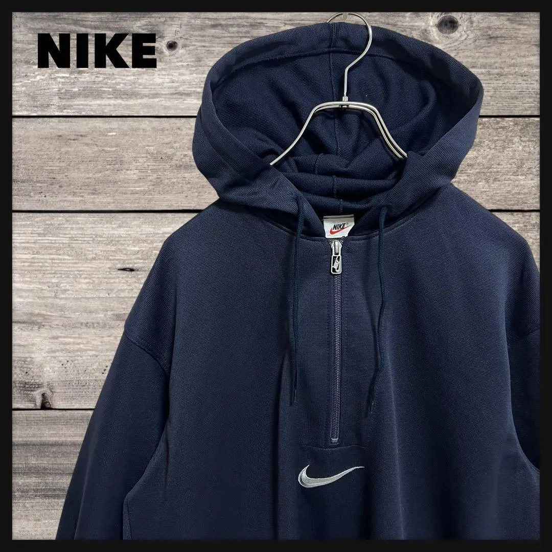 y70【銀タグ】ナイキ 刺繍 ロゴ ハーフジップ アノラック パーカー 一点物