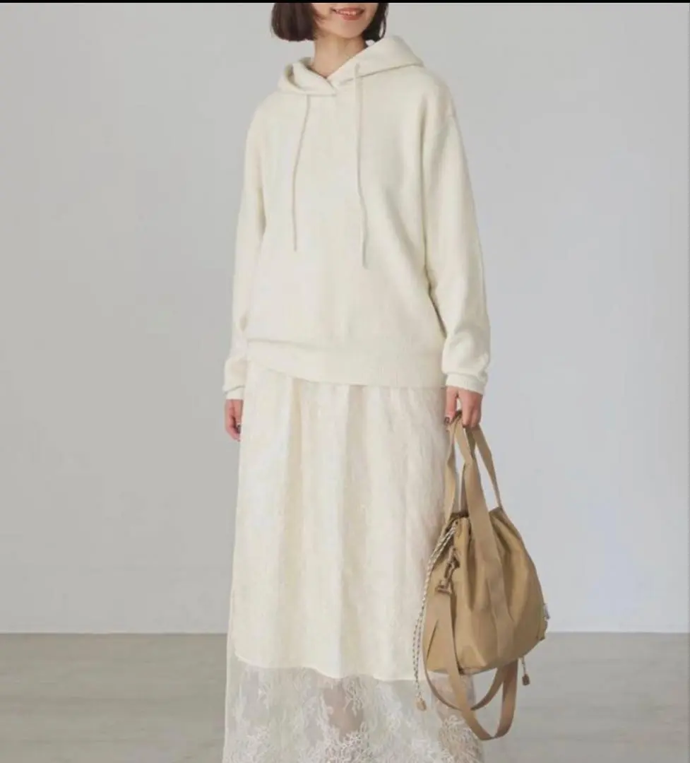 2024AW SLOBE IENA エアリーニットフーディ パーカー ホワイト