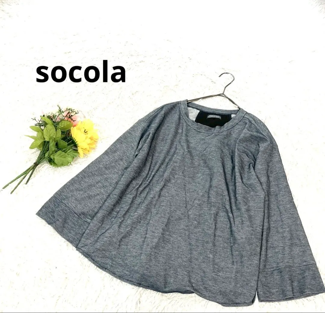★socollaソコラ 2 フレアスリットスリーブ カットソー 伸縮性 お洒落