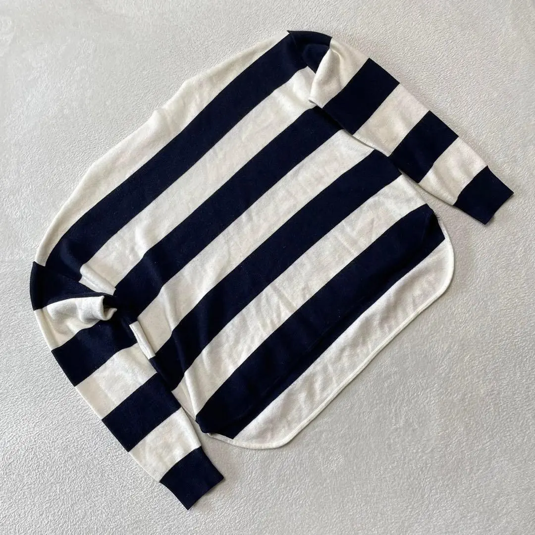 socolla ニット セーター 長袖 ボーダー ホワイト×ネイビー おしゃれ