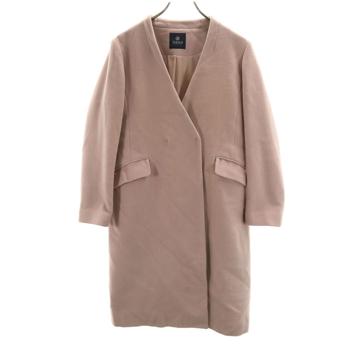 nano universe ナノユニバース ノーカラーコート 38 ピンク レディース 古着
