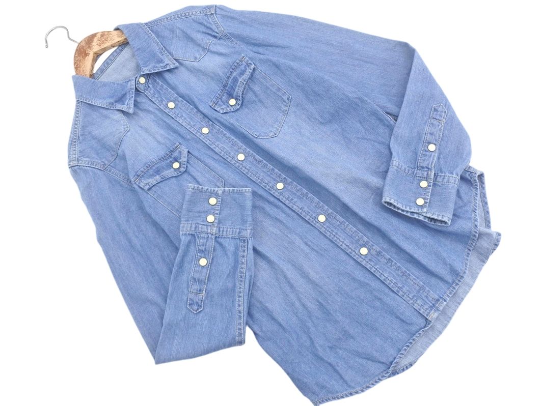 アズール◇デニムシャツ コットン混 ミディ丈 大人カジュアル アメカジ S