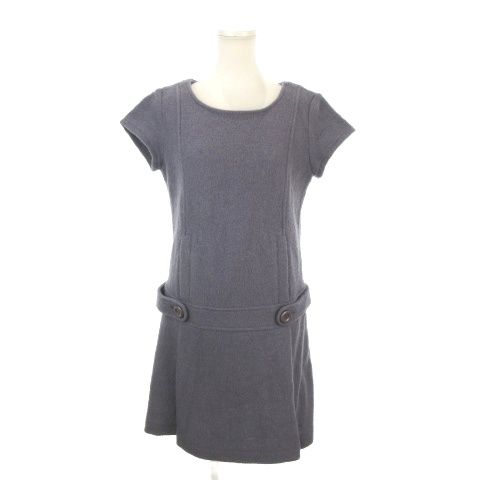 アズノウアズ as know as ワンピース ウール * 紫 パープル 半袖 ラウンドネック ボタン付きベルト風デザイン /MN21 ■ECB003