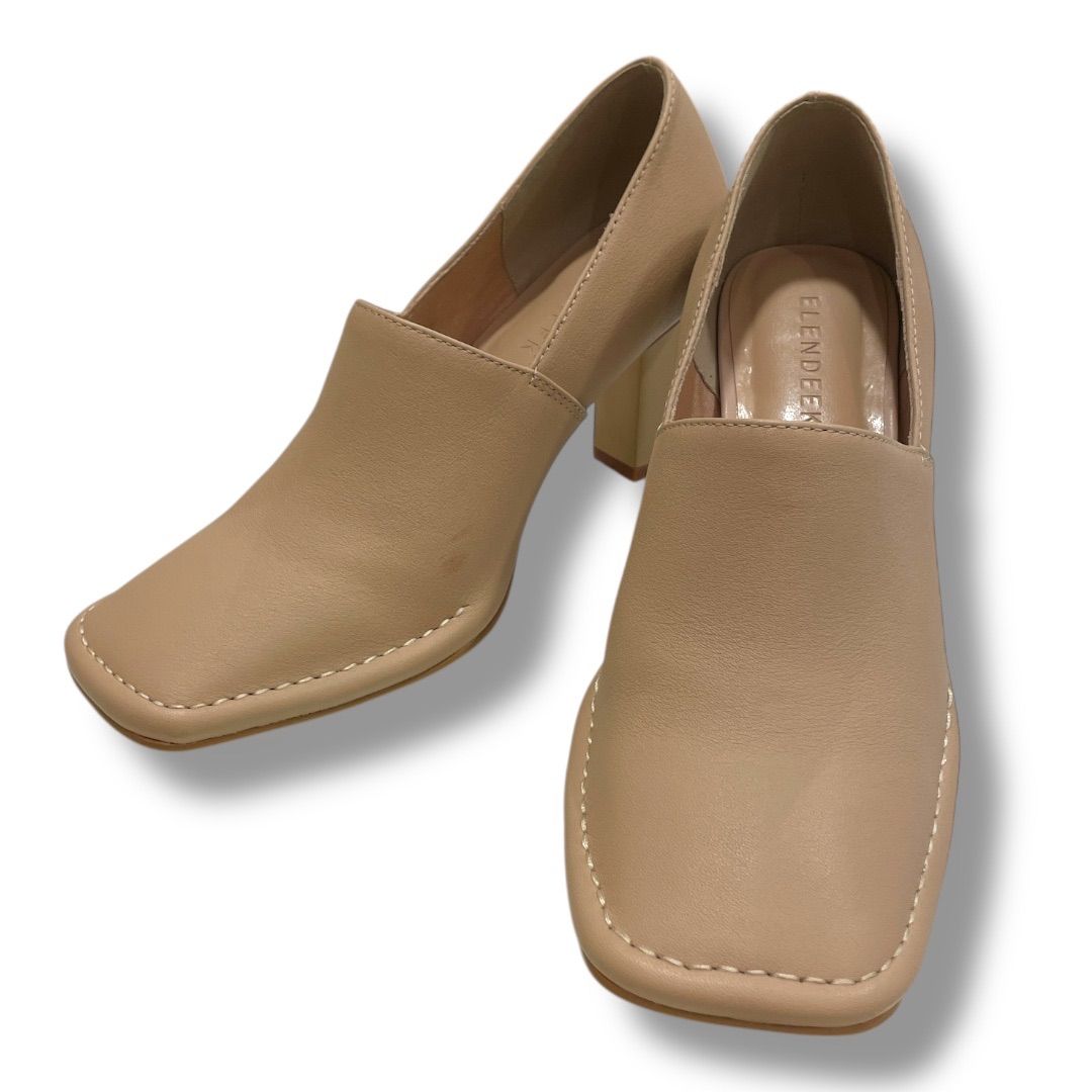ELENDEEK エレンディーク SPUARE TOE STITCH BOOTIE 牛革 スクエアトゥ ステッチ シンプル 万能スタイル ベージュ サイズ37 23〜23.5cm レディース 春 ゴーゴー古着セントラルパーク名古屋店No.2071