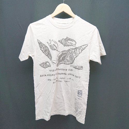 ◇ Pure Waste ピュアウェイスト クルーネック フロントプリント 貝柄 半袖 Tシャツ サイズS アイボリー メンズ E 【1306260048264】
