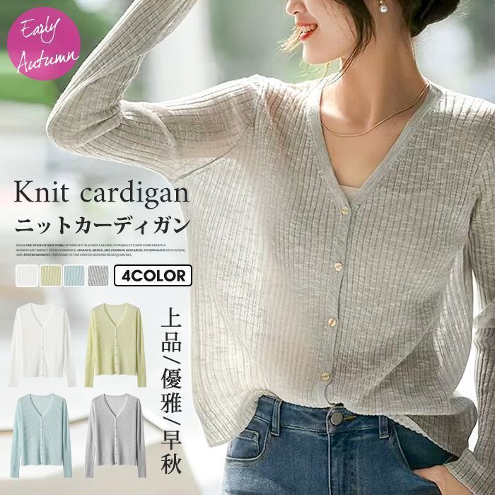 カーディガン レディース 薄手 通気性 長袖 vネック カジュアル 無地 サマーカーディガン ニットカーディガン 上着 羽織り アウター トップス おしゃれ ファッション 春 秋 夏min#