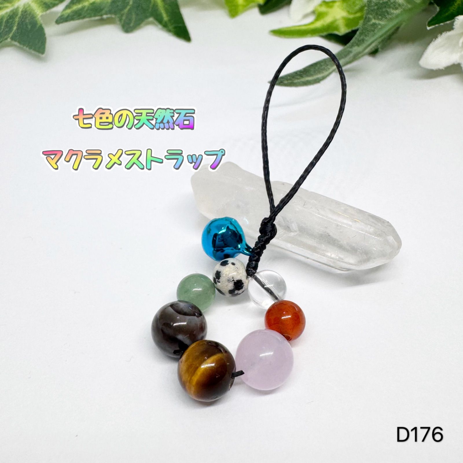 NO.D176 天然石 七色 マクラメ ストラップ 8mm 6mm パワーストーン 可愛い ストラップ お守り パワー
