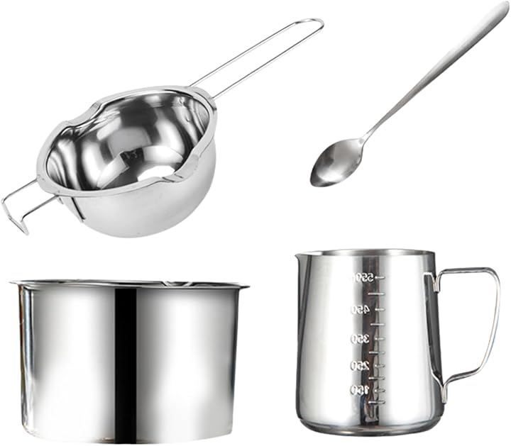 kaoco ステンレス製 キャンドル作成キット 道具 セット DIY 手作り ワックス溶解ポット 湯煎 メジャーカップ 初心者 ギフト (シルバー)