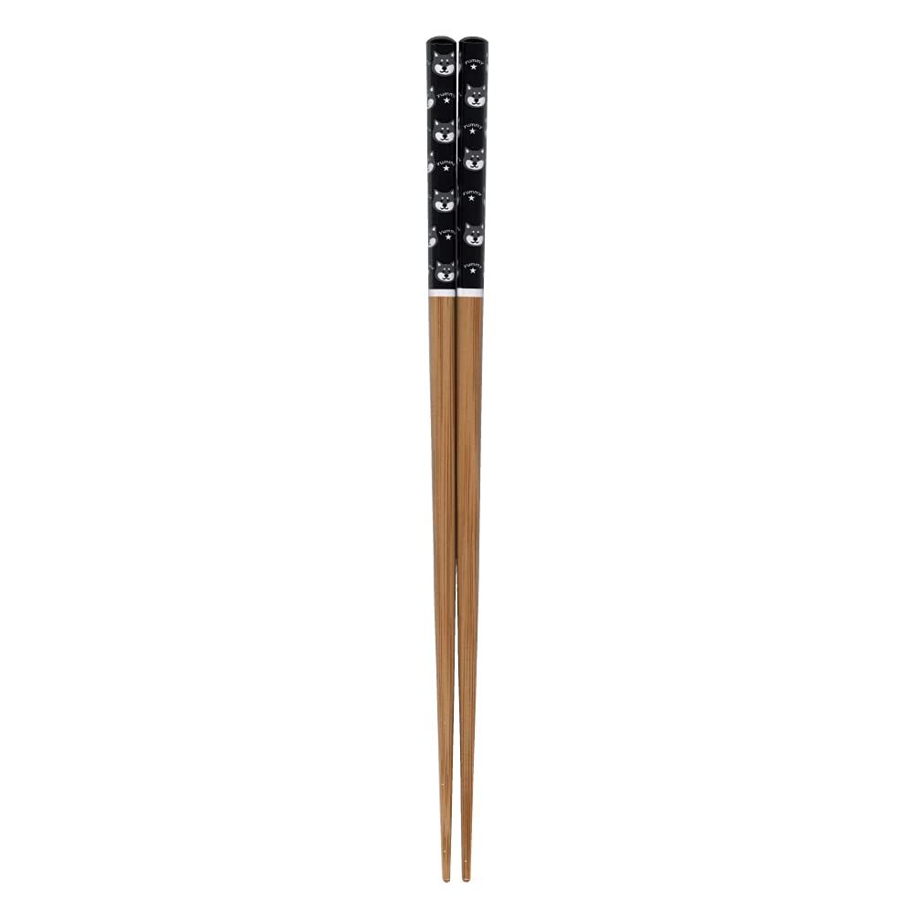 新品 田中箸店 柴犬 竹箸 22.5cm 日本製 シンプル ナチュラル 茶柴 黒柴 (ブラック)?