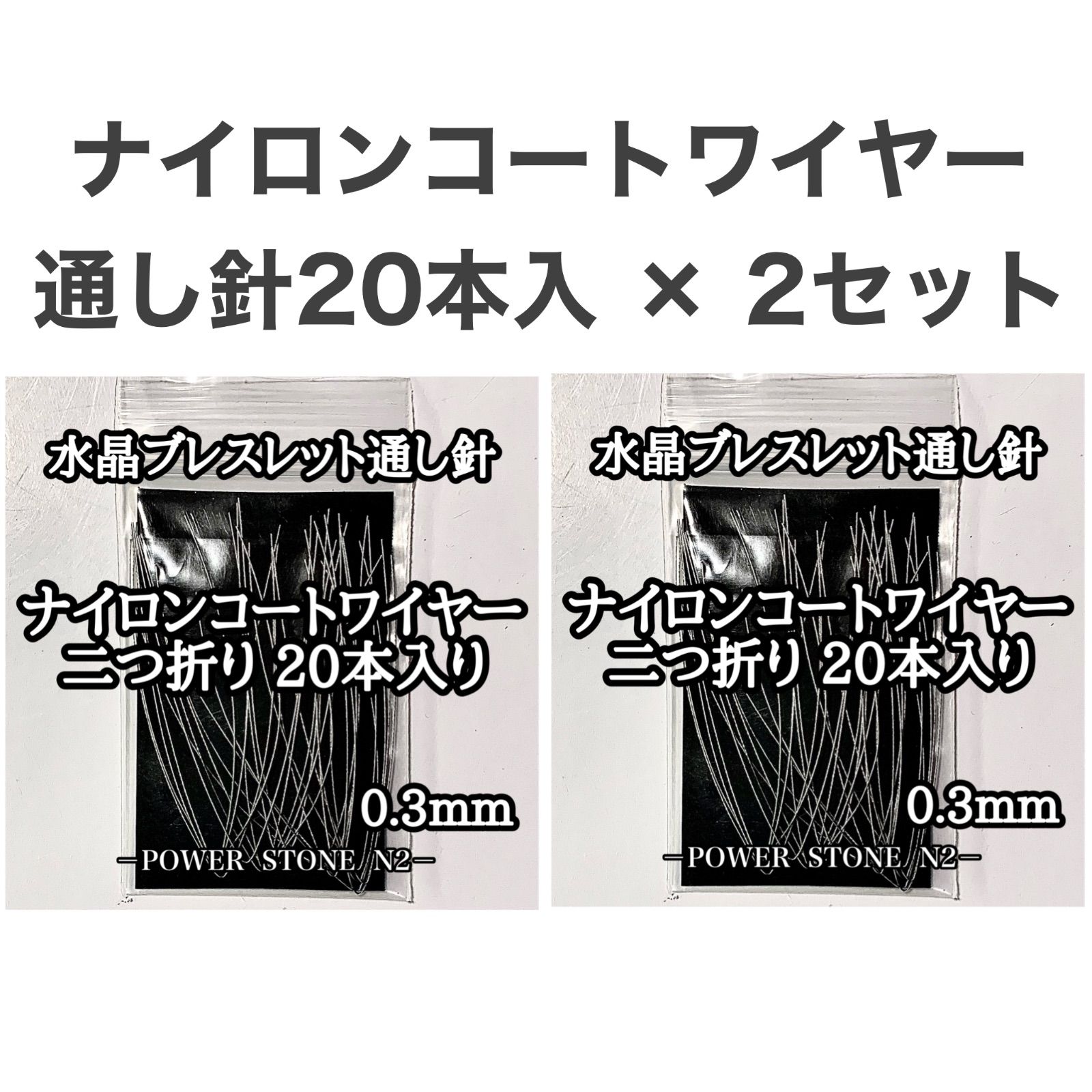 【匿名発送】ナイロンコートワイヤー 二つ折り20本入 ✕【2セット】(合計40本 / 天然石 ビーズ ブレスレット修理