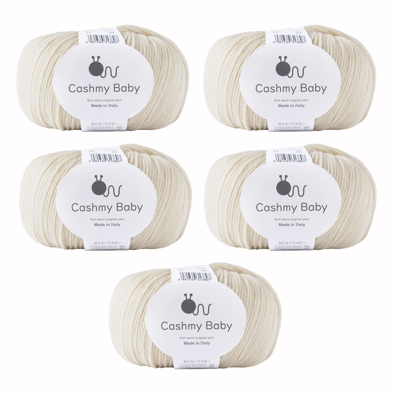 新品 原ウール knitworm 毛糸 5玉 カシミーベイビー 合太 50g(約145m) マイクロファイバーアクリル50% ナイロン50% (11.アイボリー)