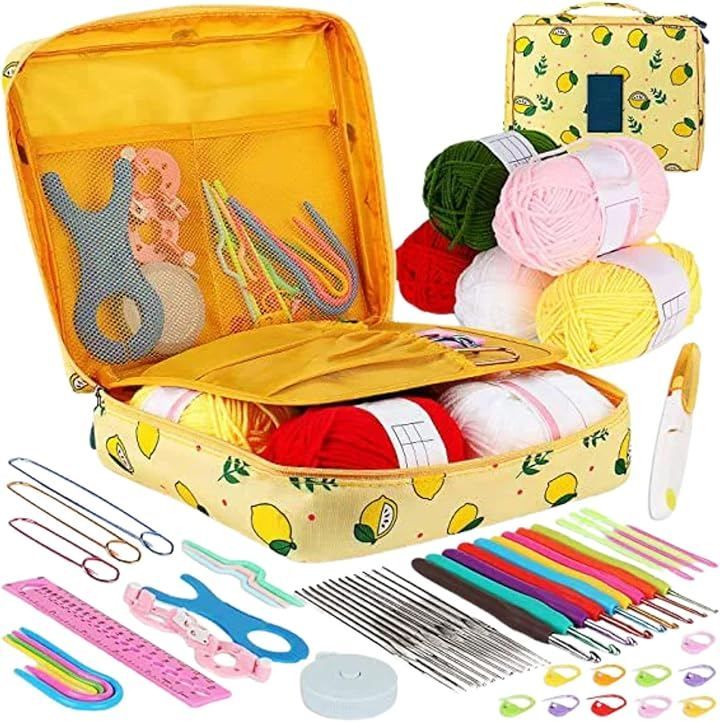geneX かぎ針編みキット 大人の初心者向け セット かぎ針糸+フック付属品一式 必要な道具全て付属 (黄色レモン)