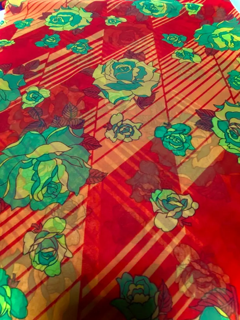 ジョーゼット 昭和レトロ ヴィンテージ 薔薇赤
