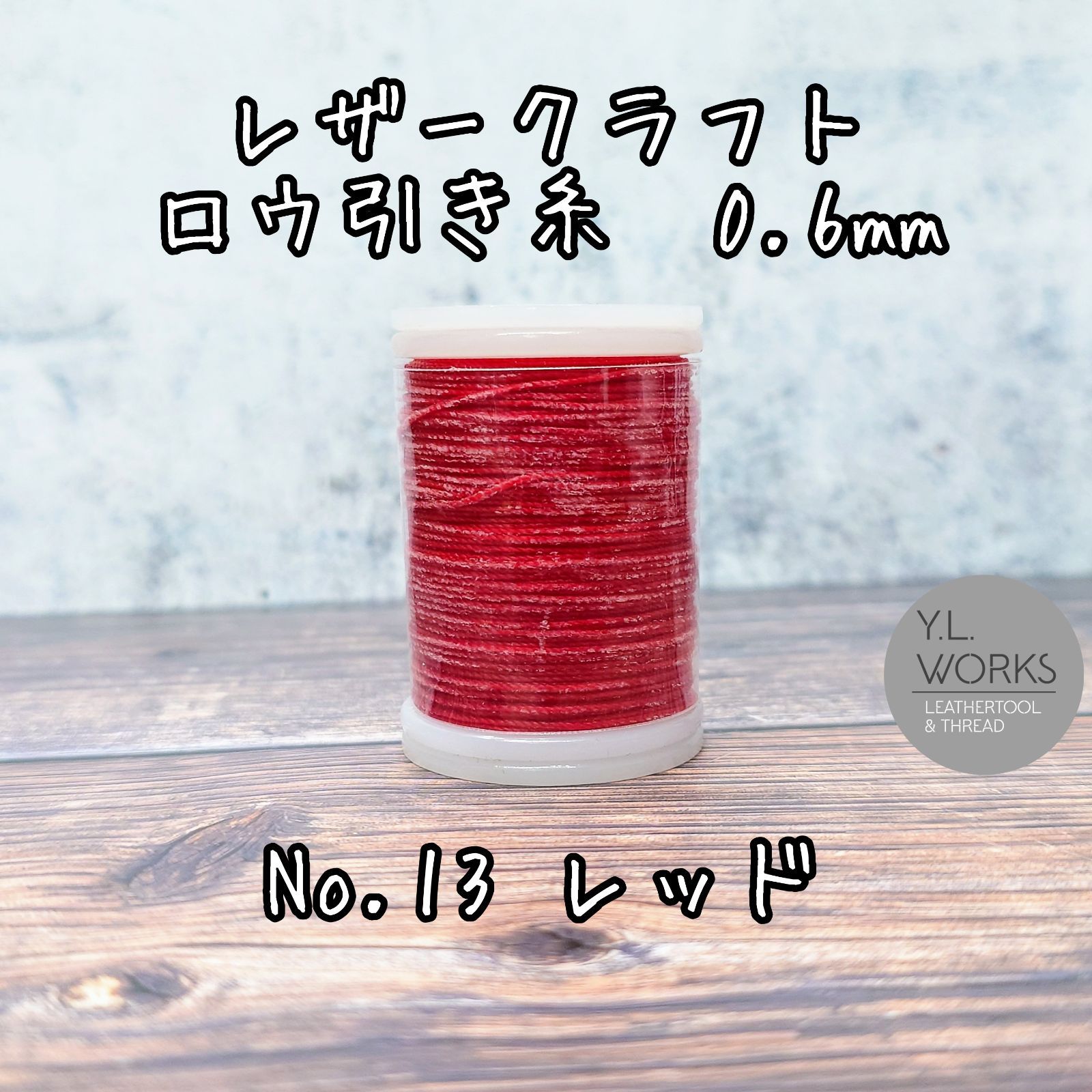 レザークラフト ロウ引き糸 レッド No.13 0.6mm 約75m