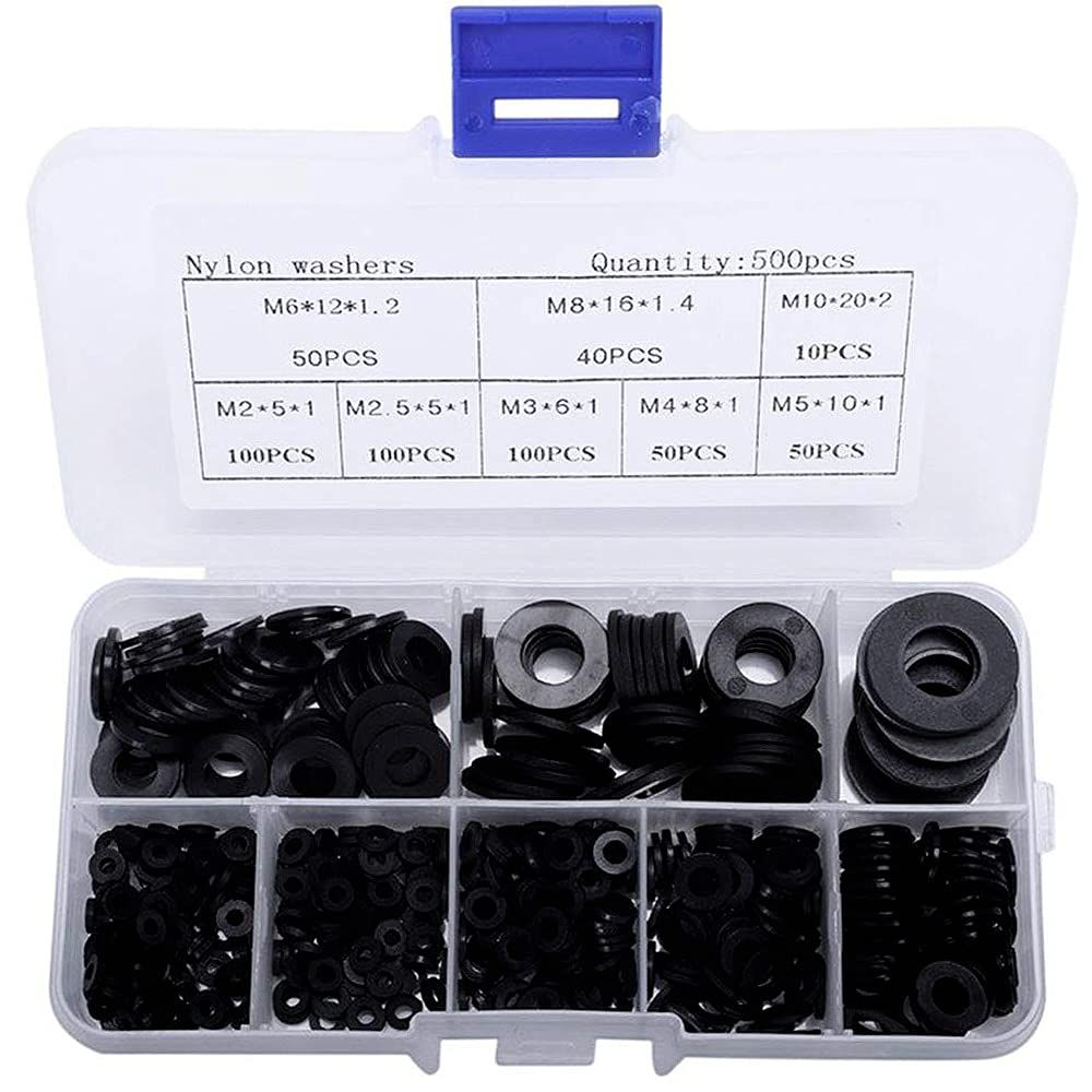 特価商品 ナイロンフラット フラット ワッシャー 平座金 M2-M10 メントキット ナイロン絶縁 フラットワッシャー 収納ケース付き 補修 便利 ツール 500pcs