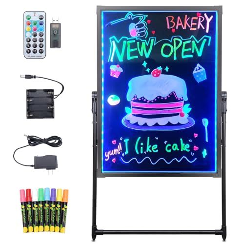 led看板 電飾看板 光る看板 掲示板 屋外 a型 スタンド 立て看板 手書き 7色点滅 8色マーカー付 デジタルサイネージ 黒板 ネオン 飲食店 カフェ メニューボード DIYメッセージ 60×80cmma