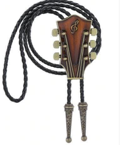 ループタイ ボロタイ 音楽 ネックレス 音符ギター ブラックシルバー