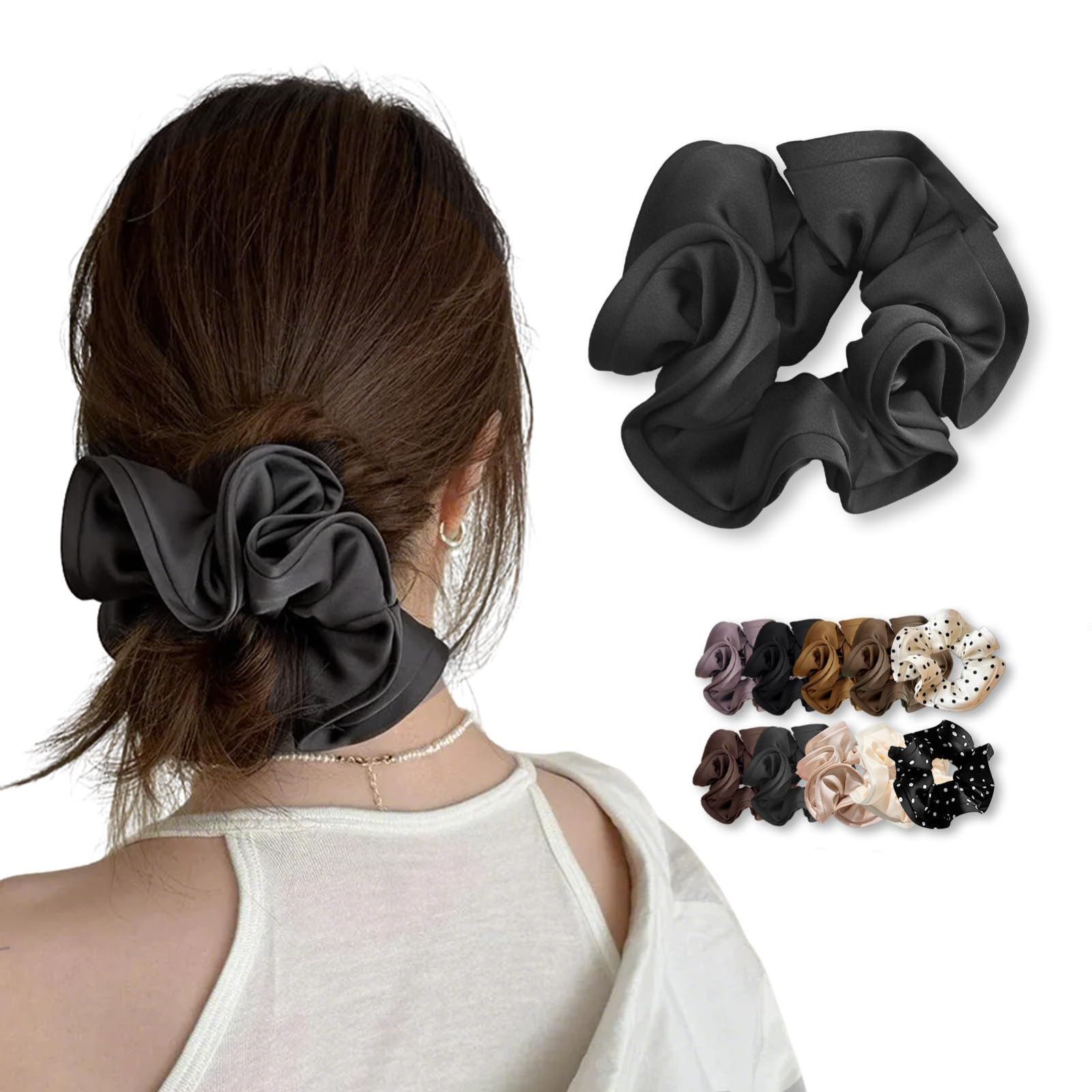 アクセサリー 大人 髪飾り レディース (ダークグレー) レトロ エレガント 髪ゴム ボリューム ヘッドロープ サテン 大きめ シュシュ シルク