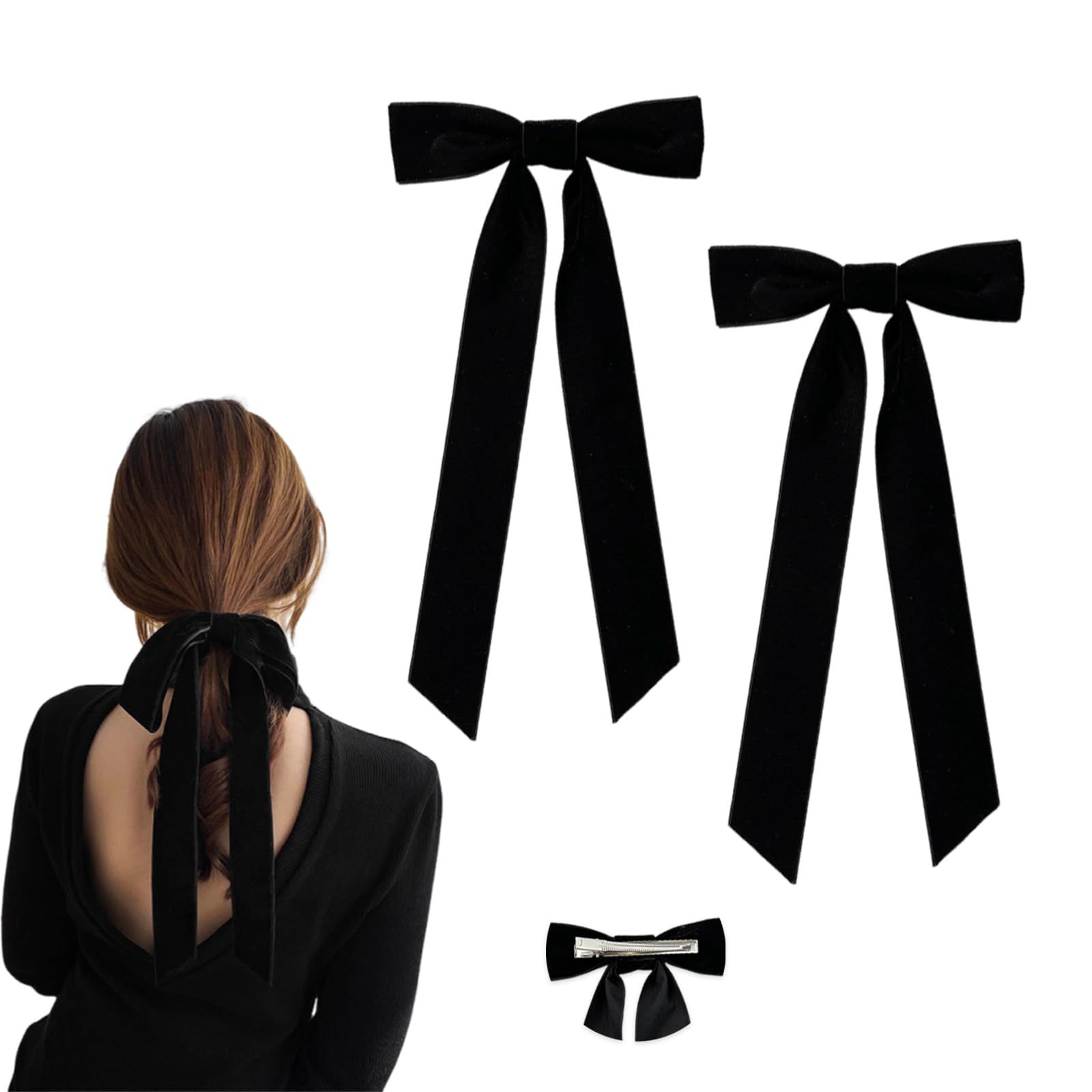 【新着商品】可愛い シンプル おしゃれ 卒業式 入学式 髪飾り 結婚式 大人 キッズ ブラック ヘアクリップ ロングリボン ヘアアクセサリー 2個 ベロア リボン ベロアリボン