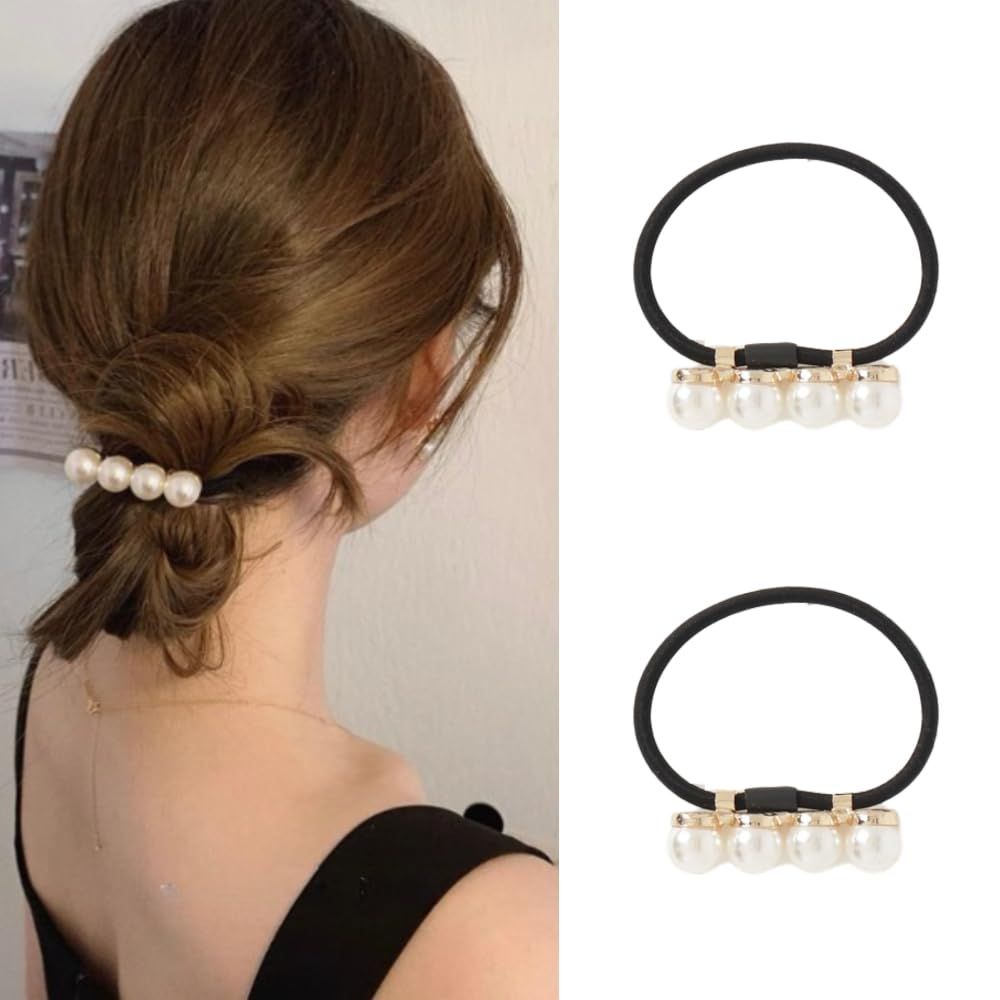 【在庫処分】4連パール 2個セット レディース ヘアアクセサリー 飾り付き パール おしゃれ 上品 シンプル ヘアゴム 大人 結婚式 韓国風
