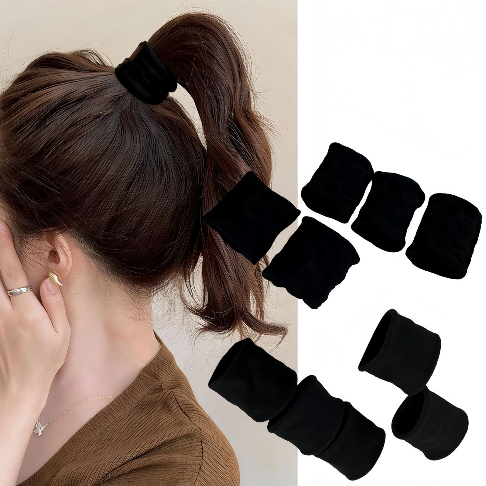 【数量限定】【大人気】シンプル 太め 跡がつかない 高弾性 髪ゴム 髪留め 柔らかい おしゃれ 頭が痛くならない 韓国風 ポニーテールリング 10本セット お団子用ヘアアクセサリー よく伸びる切れないゴム ヘアゴム ヘアリング 2026最新 (滑面・黒色+印花