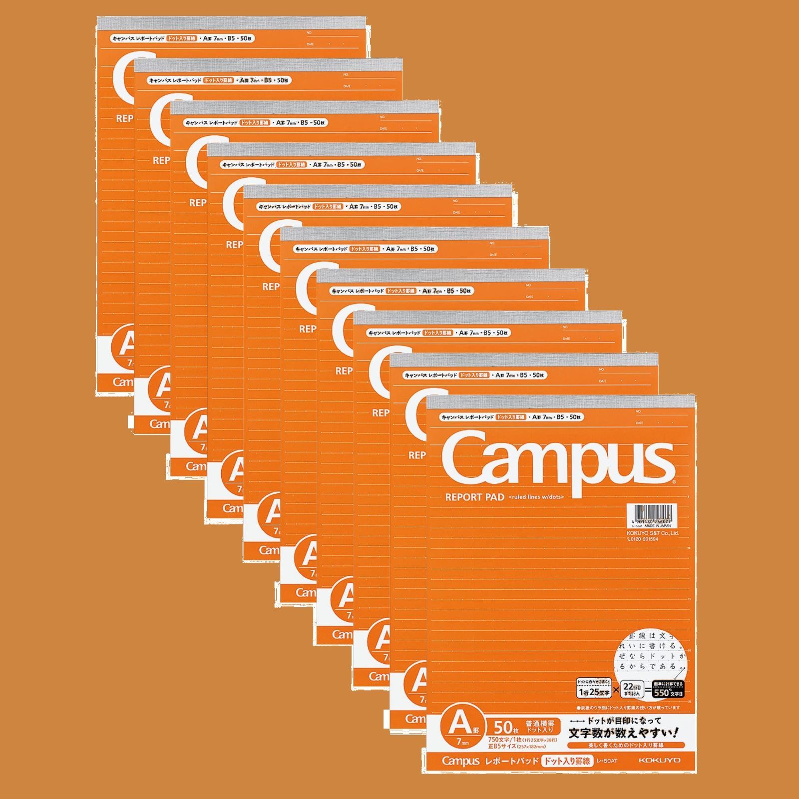 コクヨ(KOKUYO) キャンパス レポート箋 ドット入り罫線 B5 A罫 50枚 10冊セット レ-50ATX10