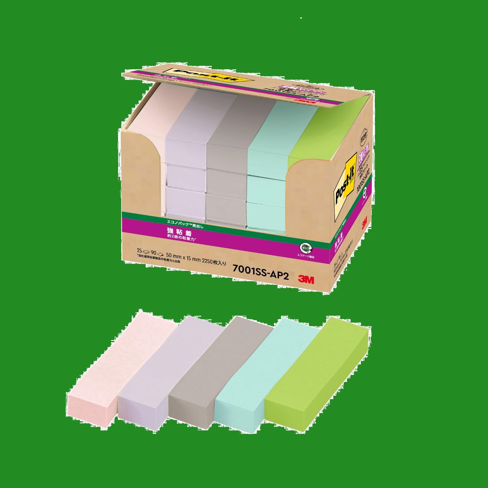 ポストイット 強粘着 付箋 ふせん 長方形 見出し 再生紙 50×15mm 90枚×25パッド 7001SS-AP2