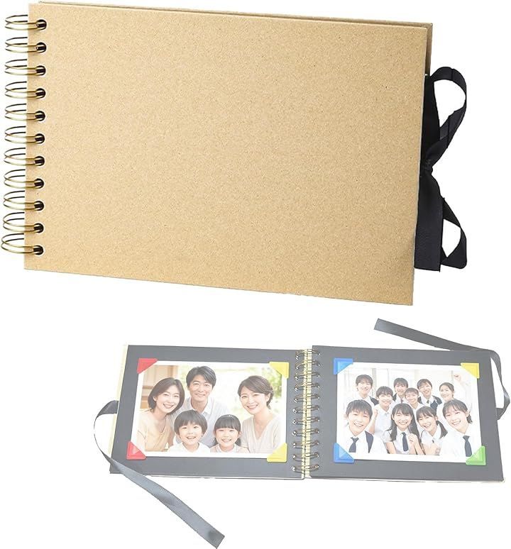 Alpha Depot スクラップブック アルバム 手作り 台紙30枚 A5 コーナーシール付き リング式 メッセージアルバム 記念日 誕生日 プレゼント (ベージュ, 横21.5cmx縦15cm)
