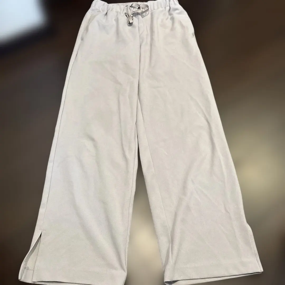 ikka グレー ワイドパンツ サイドスリットLサイズ