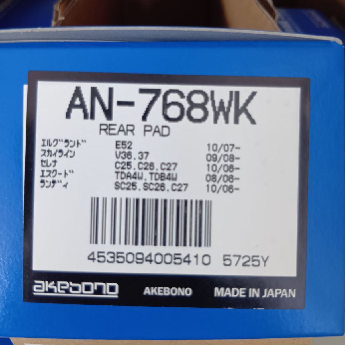 AKEBONO AN-768WK リアブレーキパッド エルグランド/スカイライン/セレナ対応 未使用 在庫品