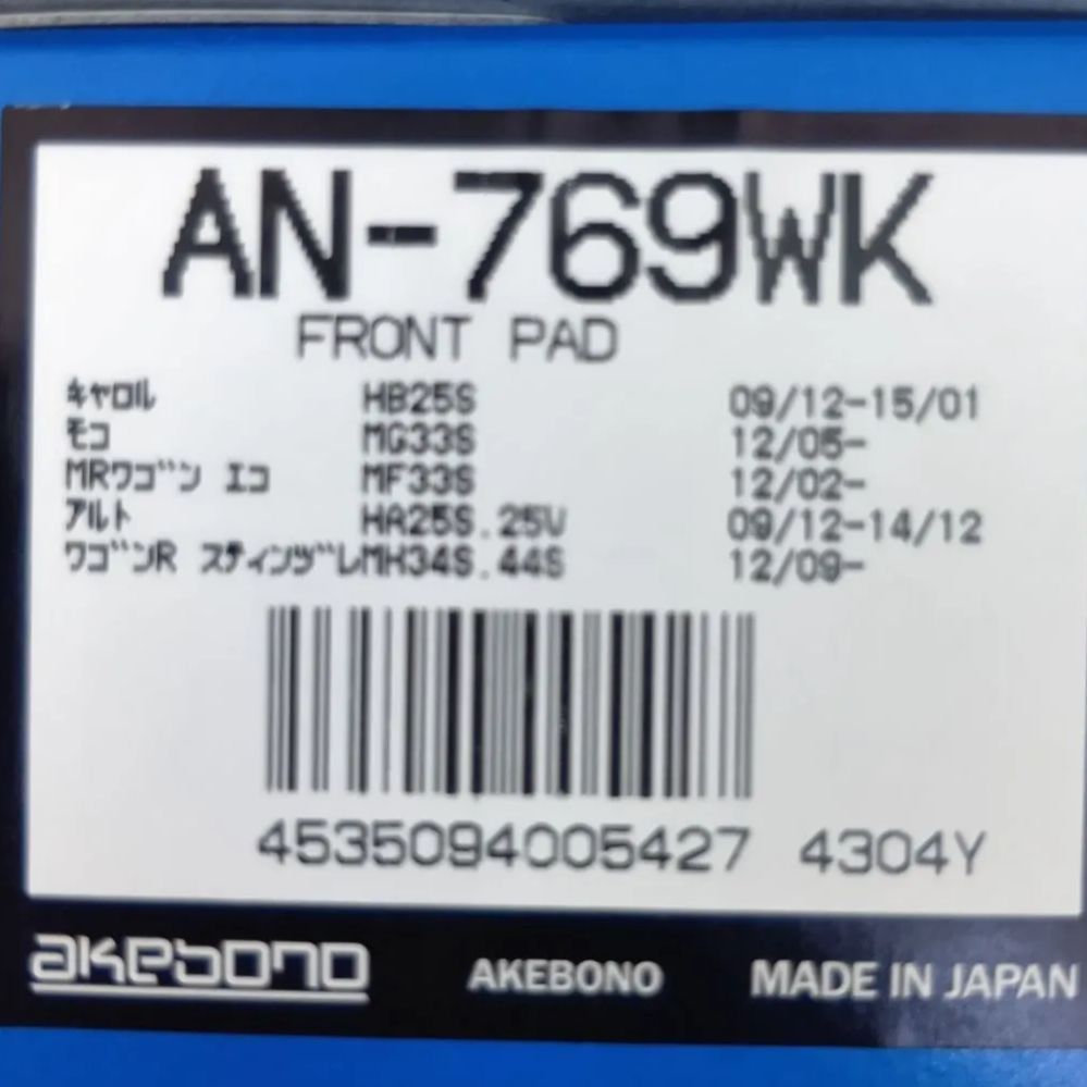 【新品】曙ブレーキ AN-769WK フロントパッド MRワゴン・スティングレー等 軽自動車用