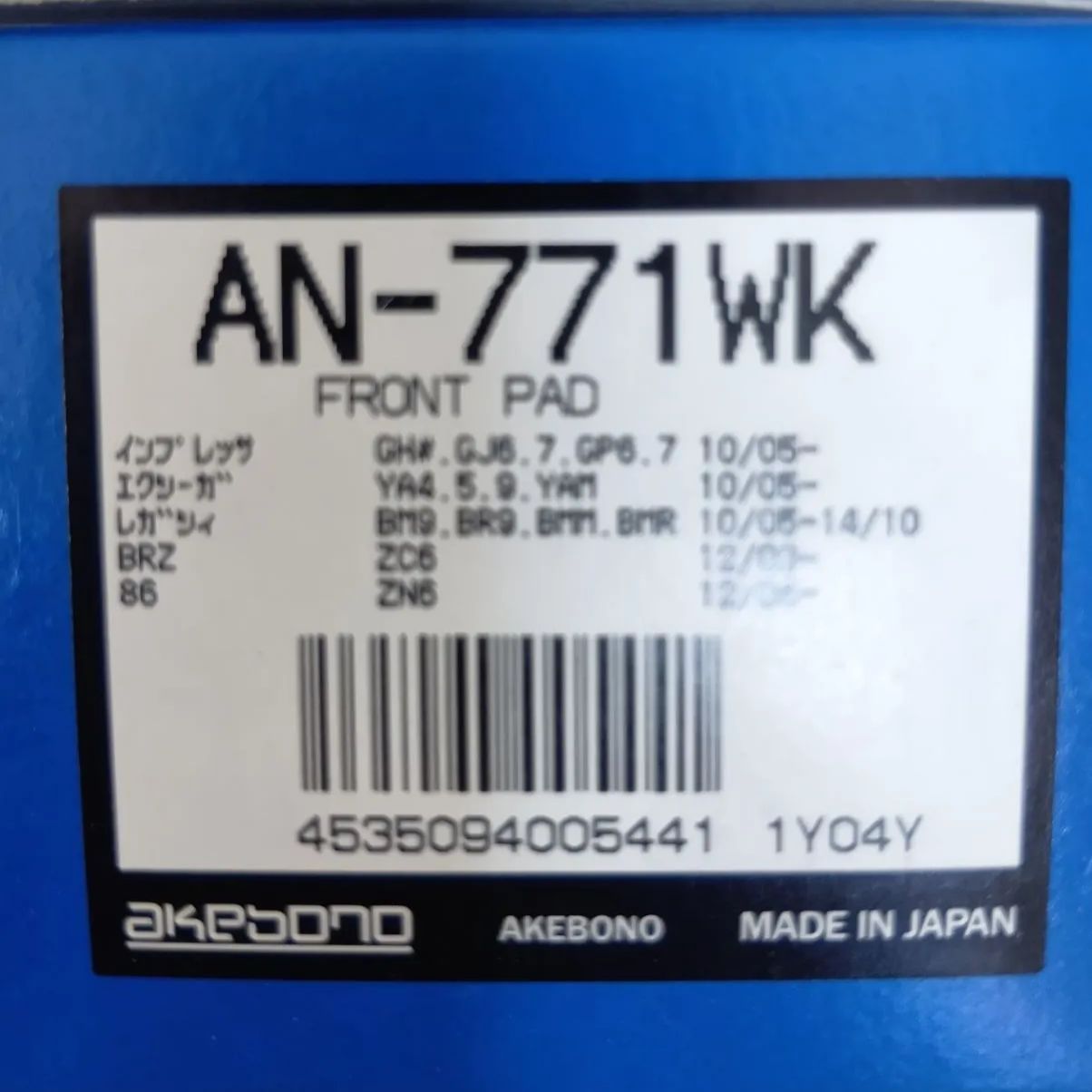 AKEBONO AN-771WK ブレーキパッド インプレッサ/レガシィ/BRZ/86対応 未使用 在庫品